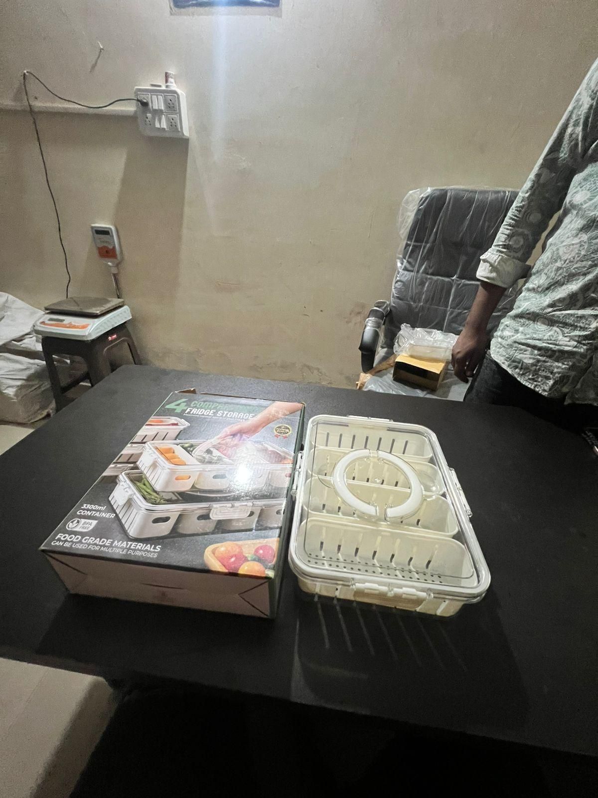 🧊 4 Compartment Fridge Storage Box – Versatile Organizer for Snacks, Spices, Fruits & More